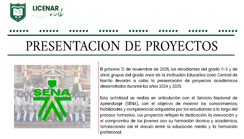 En el I.E.M. Liceo Central de Nariño mantenemos a nuestra comunidad educativa informada sobre los acontecimientos más relevantes de la institución. Aquí encontrarás las novedades, comunicados oficiales, proyectos en desarrollo y actualizaciones que fortalecen nuestro compromiso con la calidad educativa y la formación integral de nuestros estudiantes.